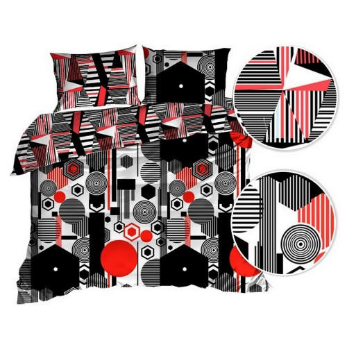 Pościel wykonana jest z tkaniny o miękkim splocie satynowym z włókien bawełnianych, które nadają delikatny połysk, dzięki temu w dotyku jest miękka, lżejsza i nie gniecie się. Daje nam przyjemne poczucie komfortu podczas snu. Pościel zawiera dwa różne wzory, w zależności od strony pościeli.